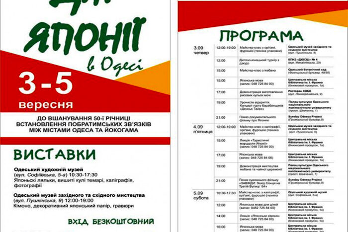По этому случаю с 3 по 5 сентября в Одессе пройдут Дни Японии.