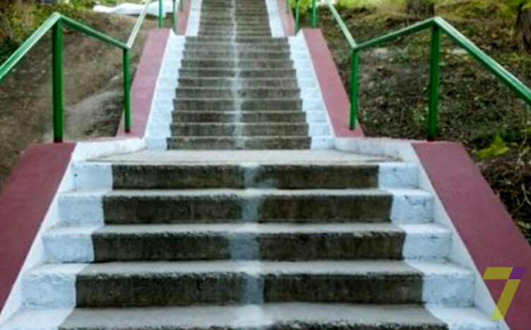 В процессе ремонта лестниц заменили тротуарную плитку, отремонтировали ливнеотводные лотки из бетонной плитки и возобновили лестничные ступени. Также тут окрасили парапеты и поставили покрашенные поручней из труб.