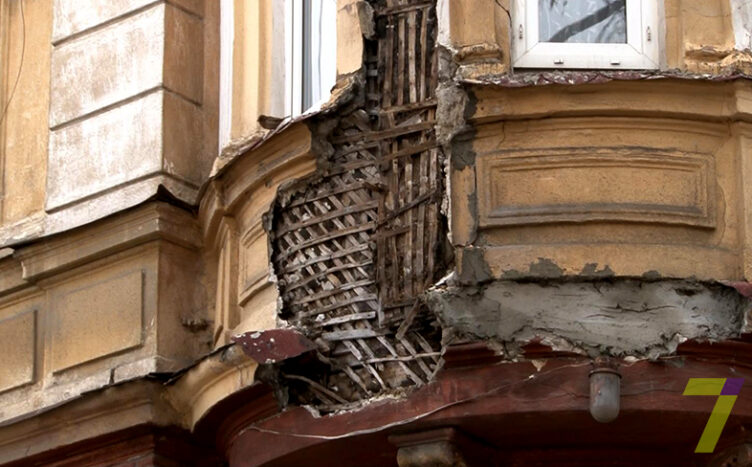 В Одессе рухнула часть фасада старинного дома (видео)
