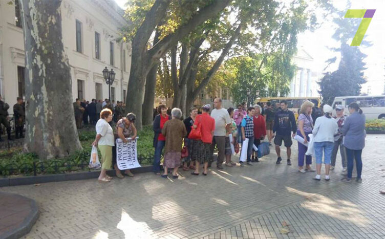 К одесской мэрии централизовано свозят пожилых людей.