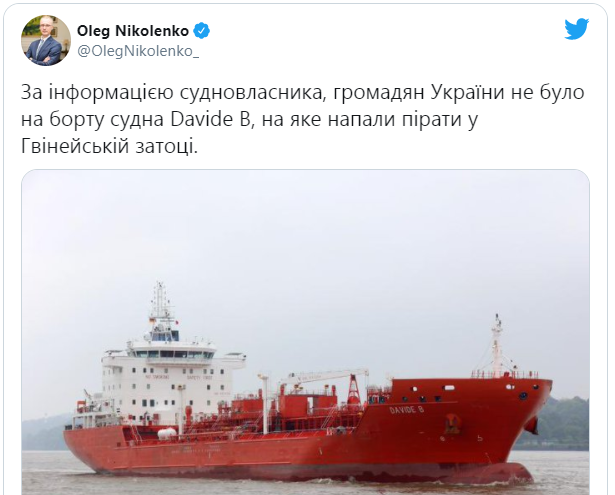 Спикер МИД Украины Олег Николенко сообщил, что, по уточненным данным, граждан Украины на борту судна не было.