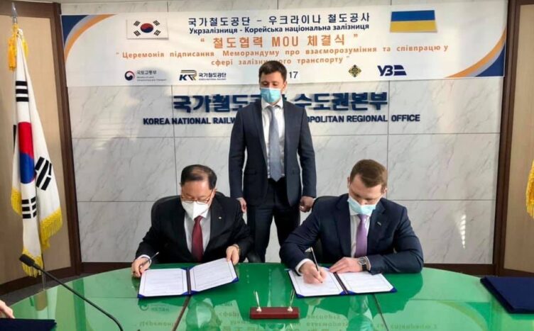 Представители «Укрализныци» подписали договоренности с Национальной железной дорогой Южной Корей о начале реализации проекта скоростных ЖД-перевозок в Украине.