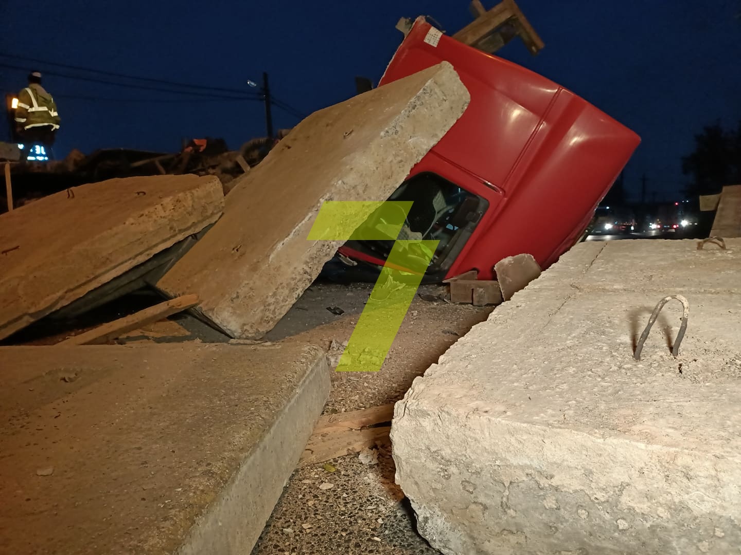 ДТП на Объездной: водитель фуры затормозил и бетонные плиты снесли кабину (фото)