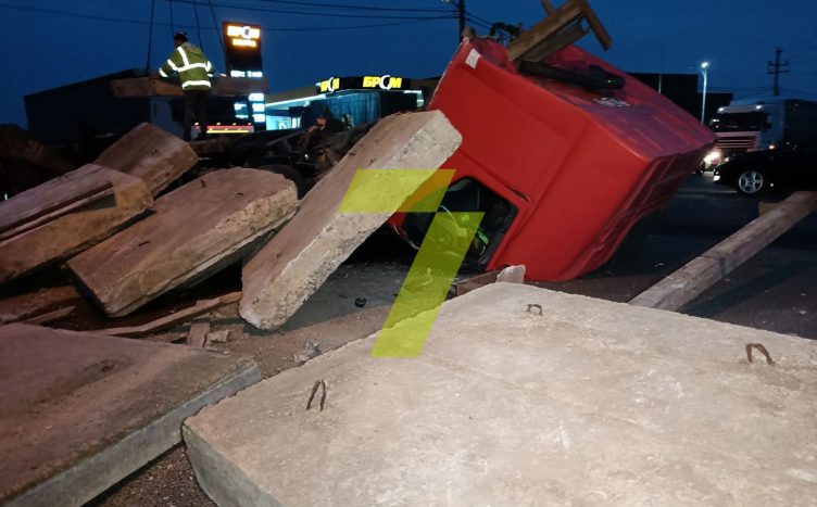 ДТП на Объездной: водитель фуры затормозил и бетонные плиты снесли кабину (фото)