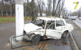 В Одессе автомобиль на высокой скорости влетел в дерево и столб (фото)