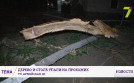 В Одессе дерево и столб упали на прохожих (видео)