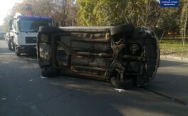 Утро началось с двух ДТП: опрокинулась Toyota и сошёл с рельсов трамвай (фото)