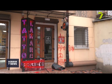 Активісти розмалювали червоною фарбою тату-салон в Одесі (відео)