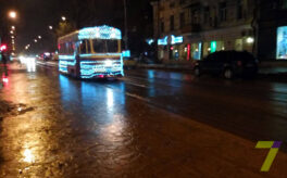 По Одессе курсирует новогодний трамвайчик (видео)
