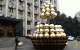 Возле здания ОГА появилась елка из шоколадных конфет